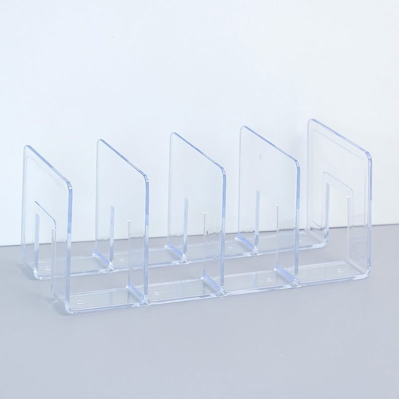- Durable materials and sturdy structure: The bookshelf is made of thickened PS material. which is sturdy. durable. impact resistant. and can be used for a long time. Smooth surface. without sharp edges or rough burrs. will not harm your hands. The structure is sturdy and stable. and the heighten and widened baffle keeps the book upright without falling down.