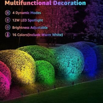 Upgraded RGBW Outdoor LED Spotlight: This RGBW LED landscape light features 4 modes (strobe/flash/fade/smooth) and 16 colors (built-in independent warm white LED chips). Three brightness levels can be dimmed using the included remote control. This outdoor LED landscape light has a memory function, retaining your last set color and mode. It’s also perfect for everyday white lighting.