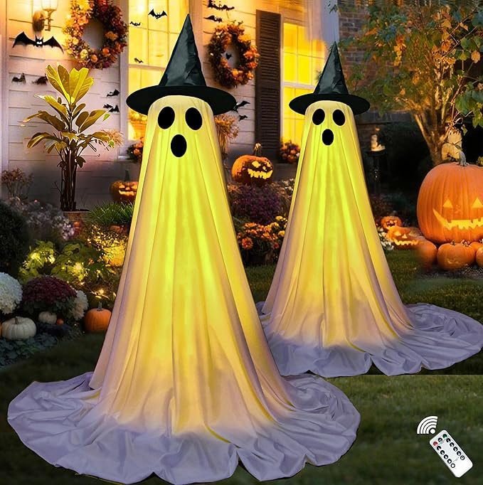 2-Piece Set Halloween Decorations 👻👻- Halloween Decorations Outdoor, Light Up Ghost Decorations Indoor with Remote Control LED Light String, Ghost Outdoor Decorations Suitable for Yard, Porch, Garden, Lawn Party